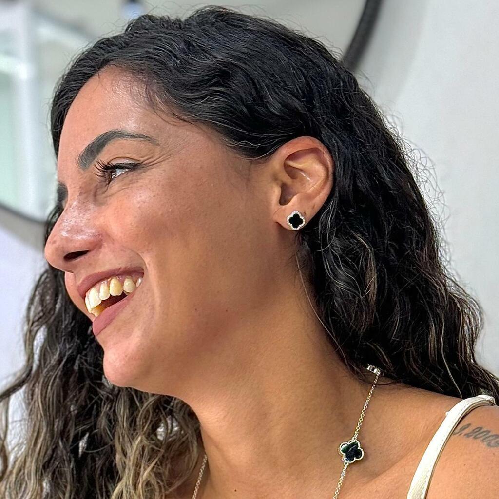 1. Brinco de Prata Trevo Pedra Natural Ônix c/ Borda Cravejada Insp.VCleef
