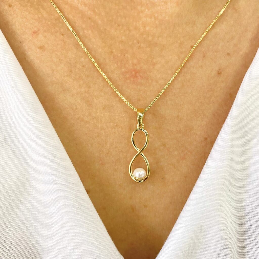 1. Colar de Prata Infinito Pérola Água Doce com Banho de Ouro