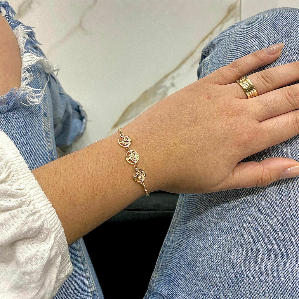 1. Pulseira de Prata 3 Árvores da Vida Zircônias com Banho de Ouro