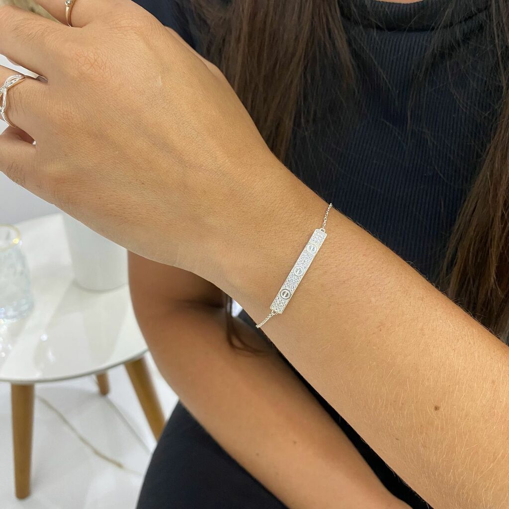 1. Pulseira de Prata Placa Cravejada 3 Fileiras Insp.Cartier
